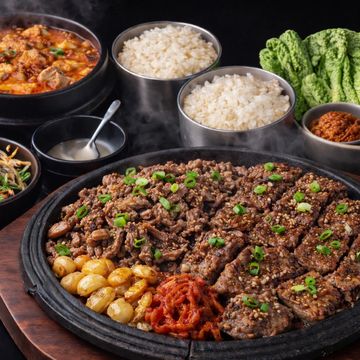 BBQ Combo - 2 BBQ items, served with 2 rice, green onion salad, lettuce wrap, and Spicy Tofu Soup
