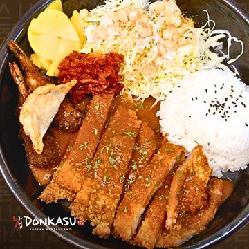 Fried chicken over rice, drizzled with teriyaki and sesame mayo sauce. Served with stir-fried kimchi and pickled radish